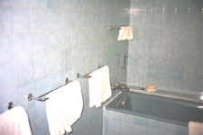 Fully tiled the spacious bathroom has a full size bath and a separate shower.
